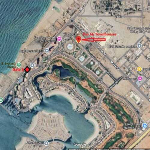 ● Dar 66 townhouses are located inside the residential Al-Hamra Village, is not directly located on the beach, nor is it part of a hotel. Rather, they are licensed as holiday homes, and located about 5 minute by car from Dar 66 compound.